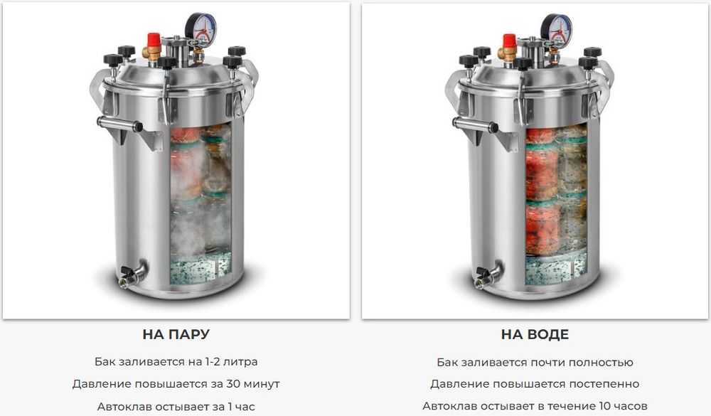 В каких режимах работает автоклав? Какой лучше: на воде или на пару?