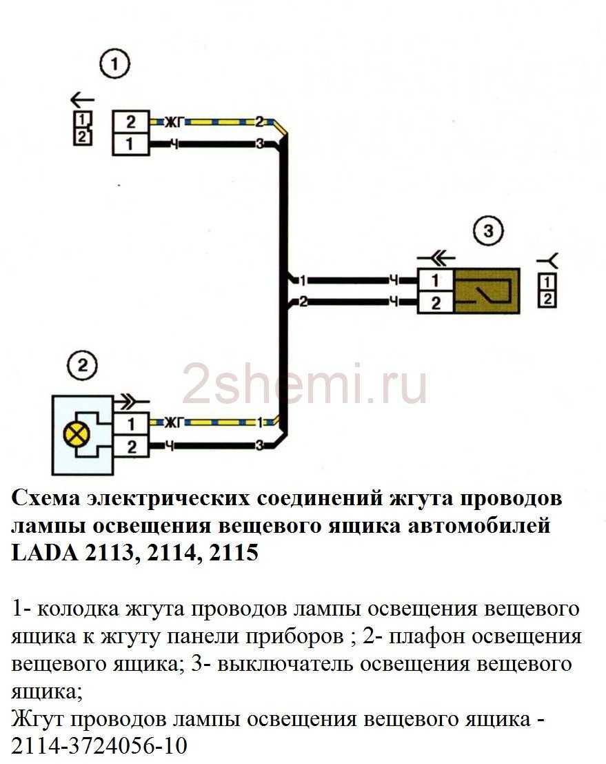 На крышке стоит магнитик, когда он далеко от датчика с герконом, подсветка бардачка включается (геркон замыкает контакты).