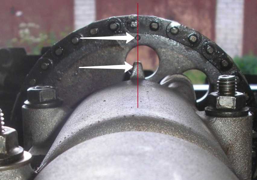 - Совмещая эти риски, должна в итоге совпасть метка на звездочке с отливом на постели распредвала. Если в итоге метка оказывается в нижней части, то следует провернуть коленвал на 360 градусов.