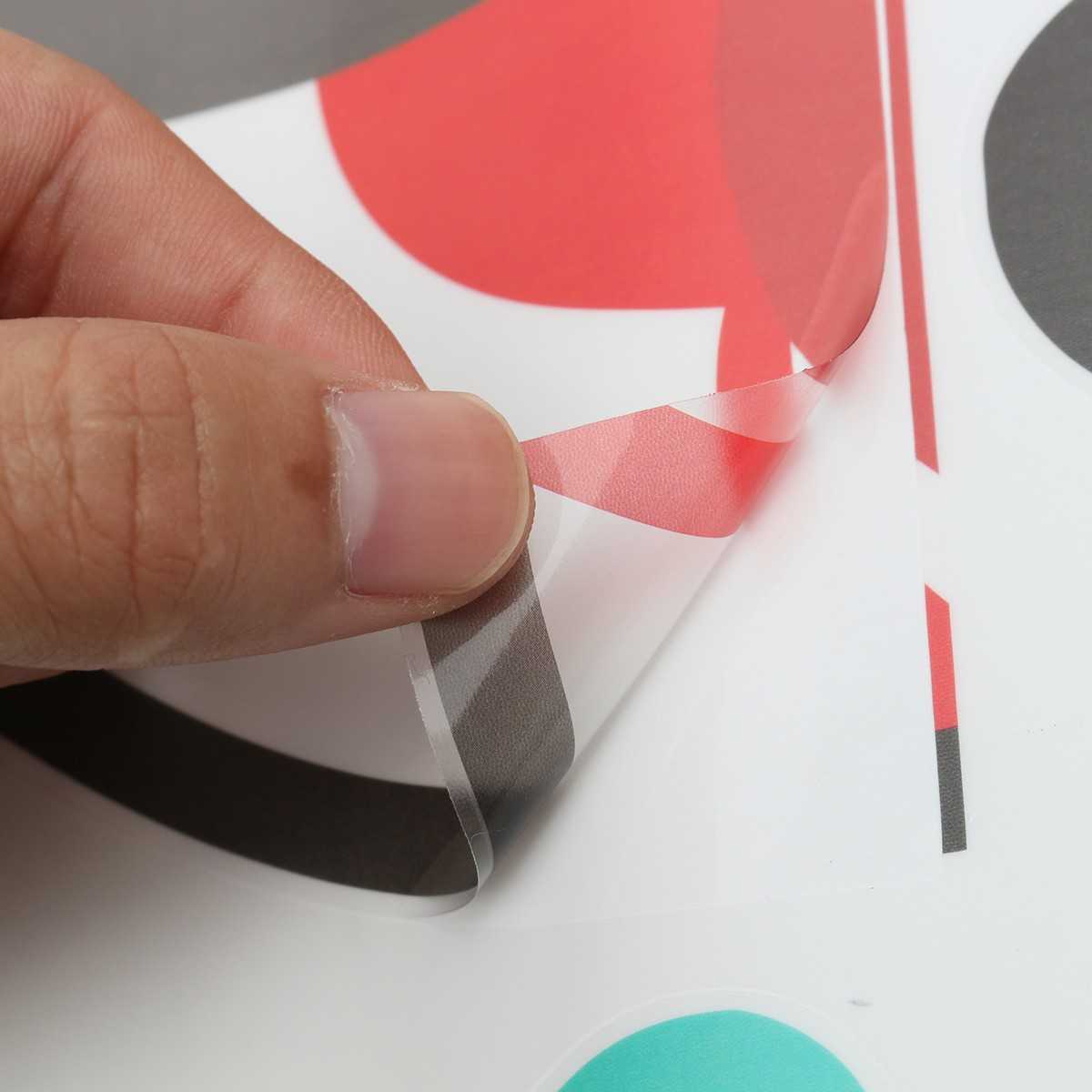 - Аккуратно отклейте внешний прозрачный слой стикера. Следите, чтобы все элементы рисунка оставались на поверхности.