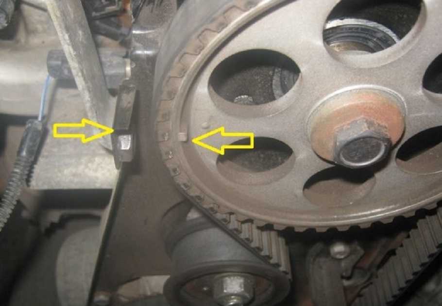 Контролируем совпадение меток на приводном шкиве распредвала и крышке ремня ГРМ
