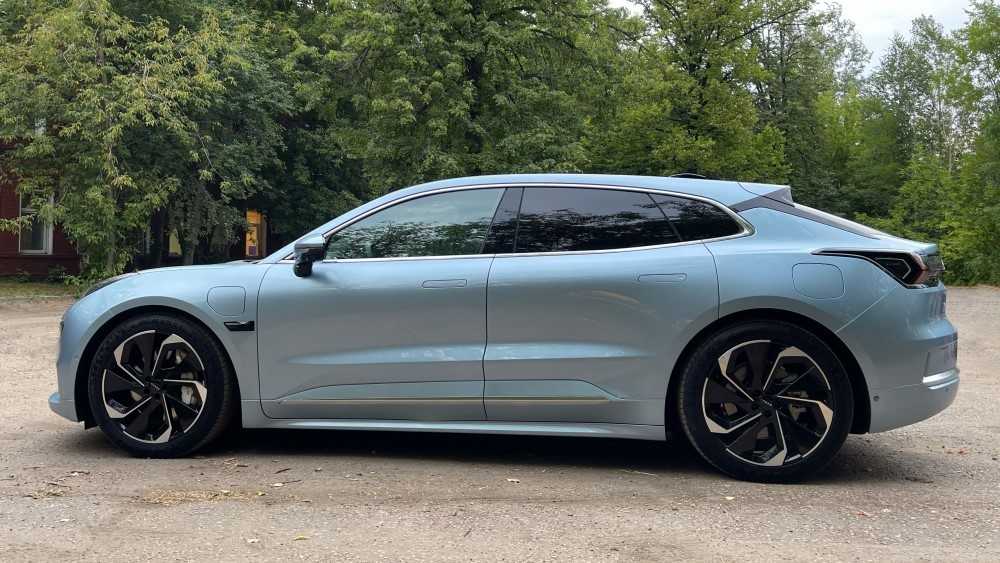 Модные выштамповки, приземистый силуэт, яркие детали и внушительные 21-дюймовые «катки» (в Китае опционально доступны и 22-дюймовые) скрывают истинные размеры электрокара. Длина кузова — 4970 мм, ширина — 1999 мм, высота — 1560 мм, база — 3005 мм. Минимальный показатель дорожного просвета при полной нагрузке — 155 мм. Весит вся эта красота 2225–2350 кг, в зависимости от модификации.