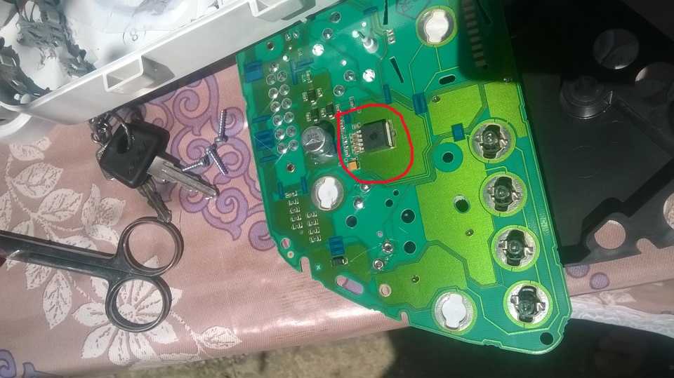 Все электрики нашего города пророчили смерть приборной панели, и в один голос кричали, покупай новую, или ищи такую же но БУ. Увидев что одометр живой и нормально фиксирует показания пройденных км., было понятно что процессор живой. Убедится в живости процессора можно и с помощью простой команды, при выключенном зажигании зажимаем кнопку сброса показаний суточника и включаем зажигание. Если стрелки на приборной панели описали дугу, значит, тестовый режим запустился, далее нажимаем еще раз на кнопку одометра и видим версию прошивки, затем нажимаем третий раз и видим кода ошибок. В режиме самодиагностики приборная панель выдает следующие коды ошибок: 2 – Избыточное напряжение 3 – Ошибка датчика уровня топлива* 4 – Ошибка датчика температуры охлаждающей жидкости* 5 – Ошибка датчика наружной температуры** 6 – Перегрев двигателя*** 7 – Аварийное давление масла*** 8 – Дефект тормоза*** 9 – Разряд батарей*** Е – Распознавание ошибки в пакете данных, заложенном EEPROM