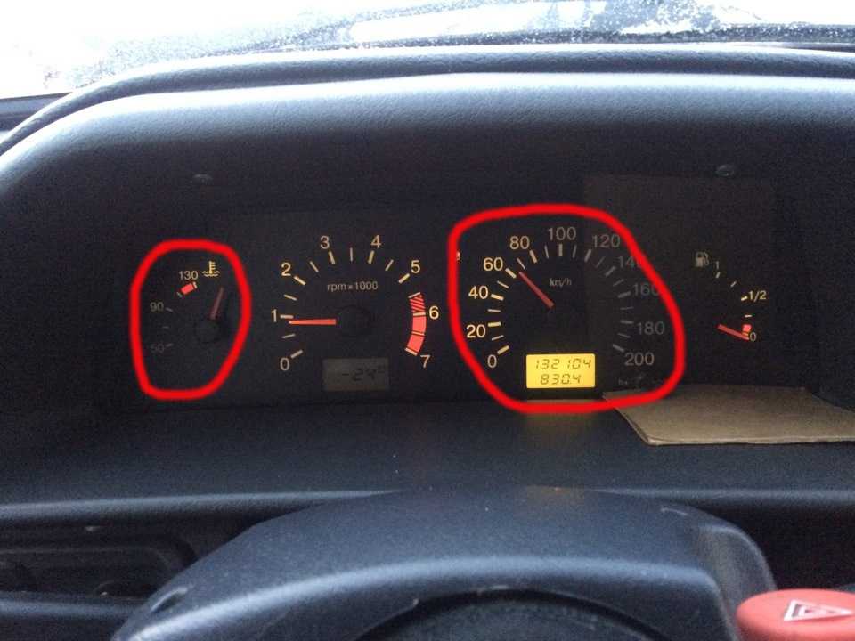 забыл написать. завис пробег и температура. машина вся отключенна а на панели показывает пробег машины и температуру. заводишь машину а цифры не меняются.