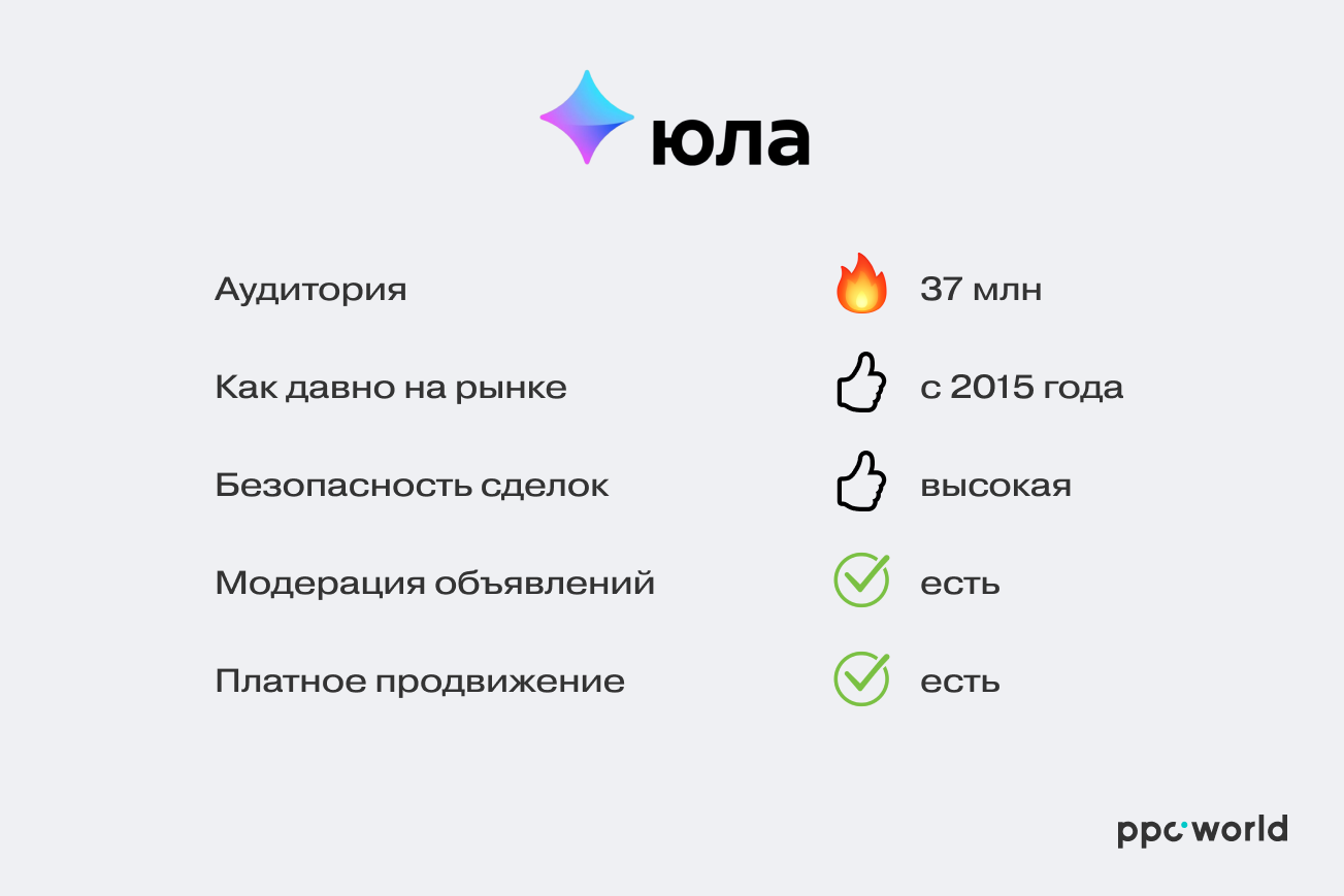 2 место — у Юлы, сервиса VK: 8 лет на рынке, имеет аудиторию в 37 млн и предлагает продавцам продвигаться за деньги.