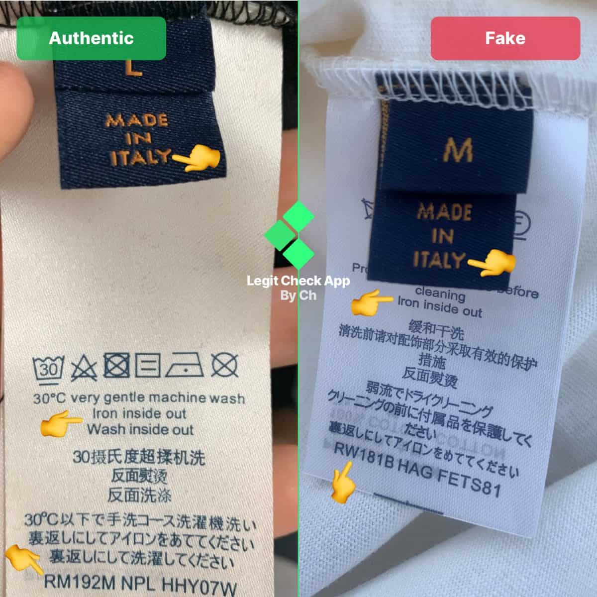 - Check the wash tags of your Louis Vuitton tee. Mostly, the fake items have their text in the wrong thickness