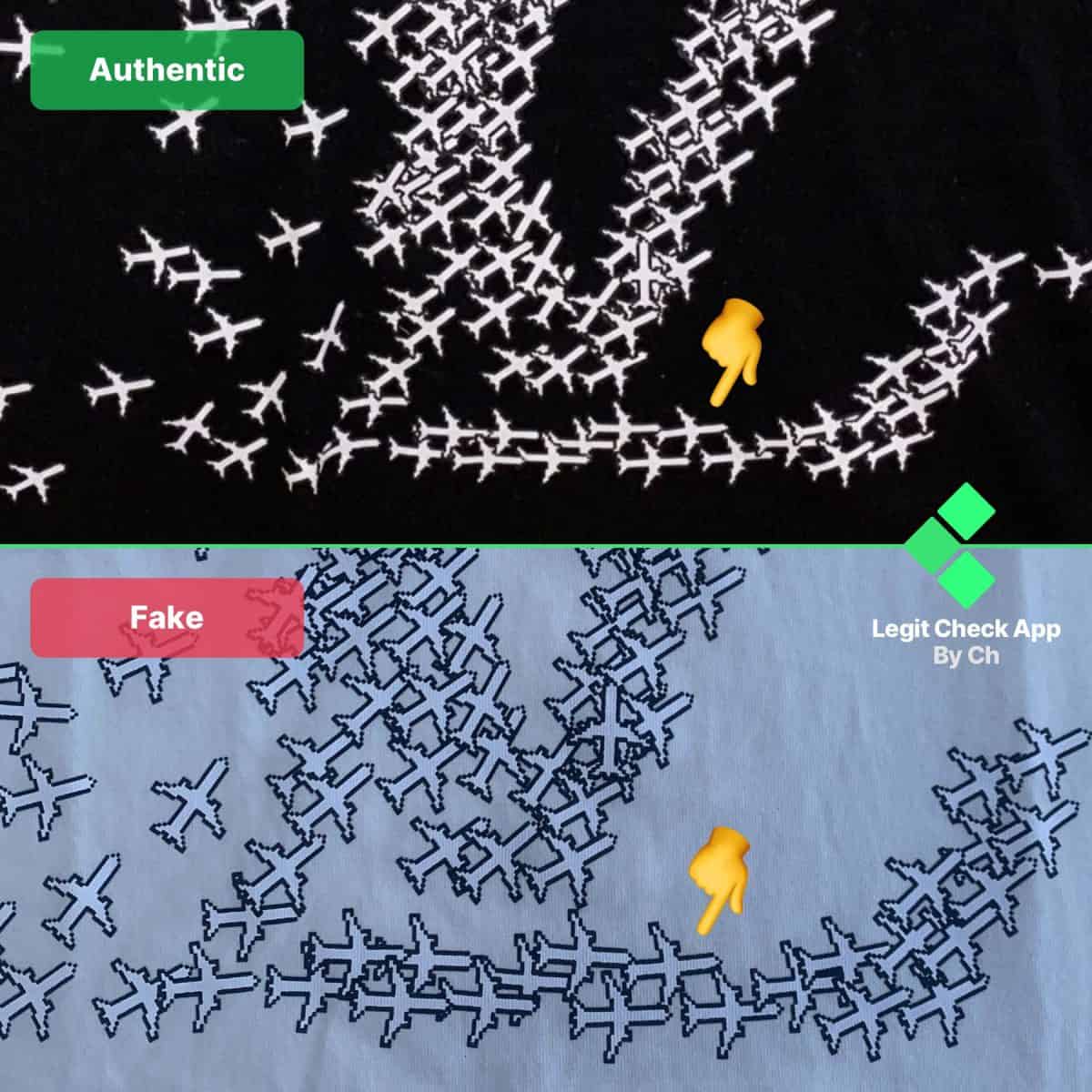 Going to the fourth and the last method on how to spot fake Louis Vuitton Airplanes t-shirts and hoodies, we are now going to look at the print with the planes.