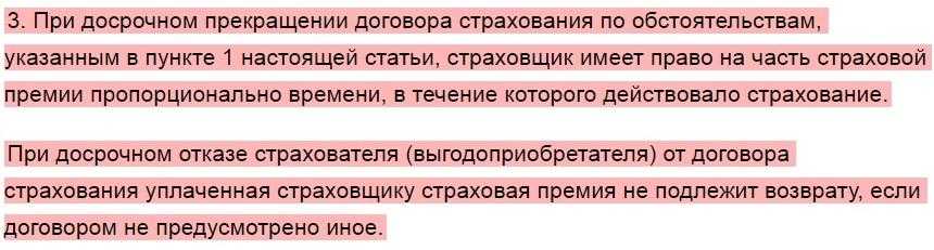 Основной законодательной нормой, регулирующей особенности возврата страховки, является ст. 958 ГК РФ. В ней говорится, что досрочное прекращение договора с СК допускается в ряде случаев: