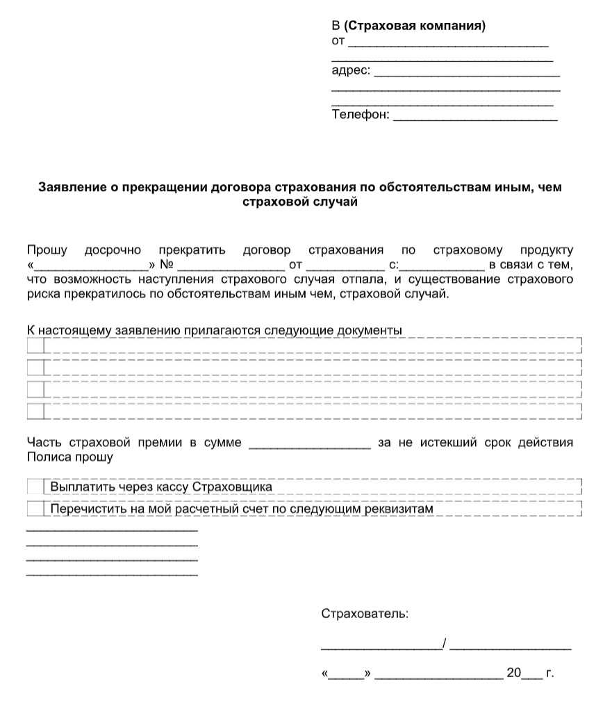 - Отказ страхователя от услуг СК в любое время, если обстоятельства, подразумевающие выплату компенсации, исключены.