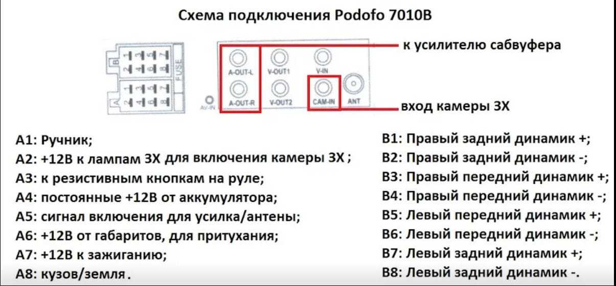 Распиновка ISO — евроразъема китайской 2 дин магнитолы с алиэкспресс (пример — Podofo — 7018B). Анлогичные магнитолы с ISO разъемом будут иметь такую же распиновку.