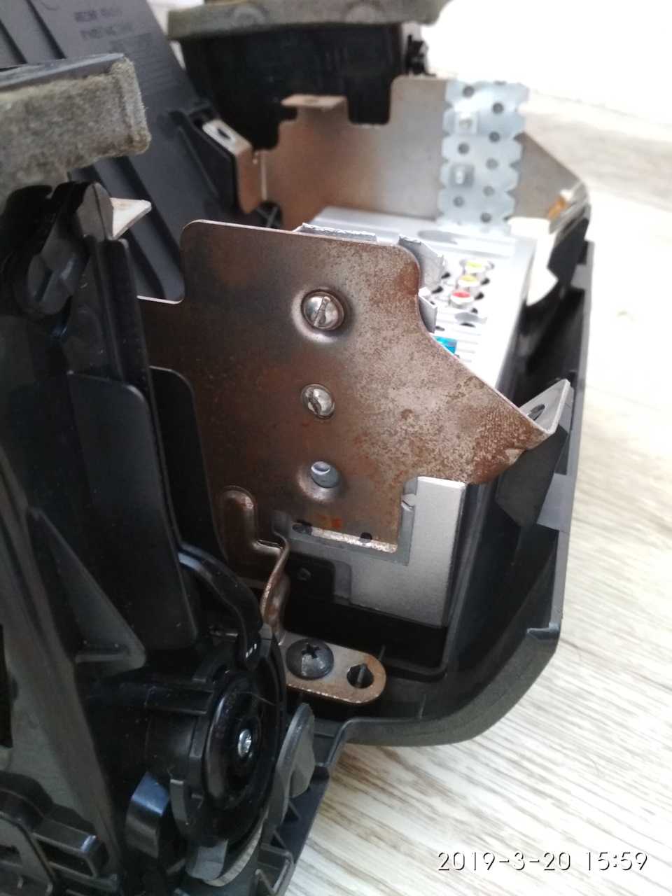Магнитола спереди установилась как родная, но отверстия в креплениях и корпусе магнитолы не совпали, поэтому крепил с помощью металлического подвеса для точечных светильников, разрезав его пополам.