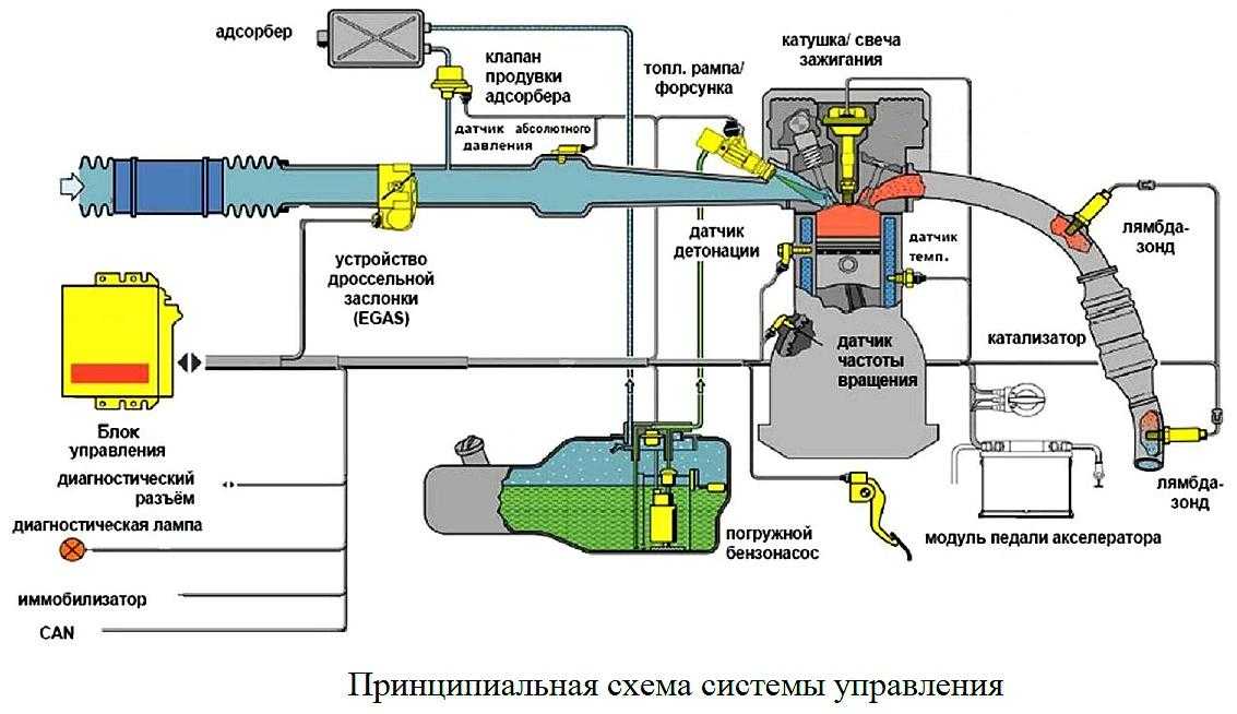 Принципиальная схема микропроцессорной системы управления двигателем ЗМЗ-40906.