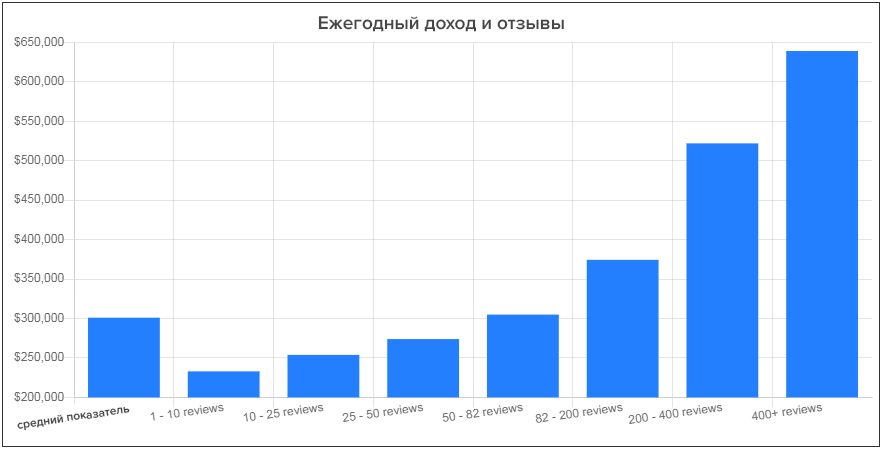 Исследование показало, что если у компании больше 82 отзывов, ее годовой доход выше среднего показателя на 54%