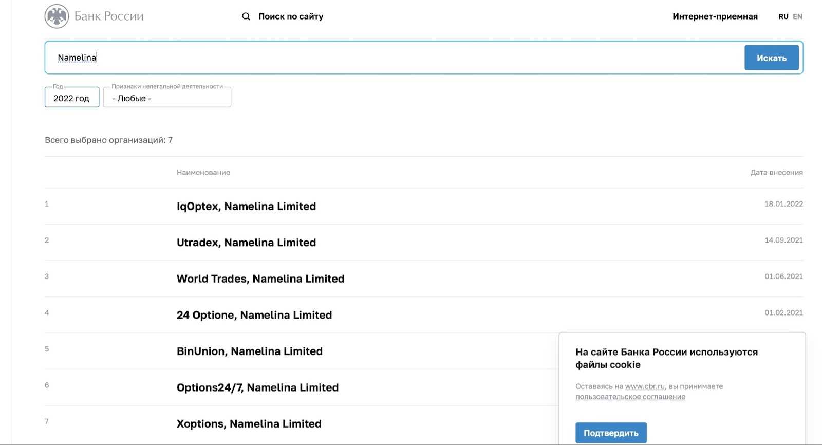 Ясно, что это не полный перечень мошеннических проектов, работающих «под крылом» Namelina Limited. Некоторые не успели попасть в черный список ЦБ РФ из-за мизерного срока существования. И FinOption из их числа. Однако, судя по активно растущему пулу негативных отзывов, его ждет участь предшественников.