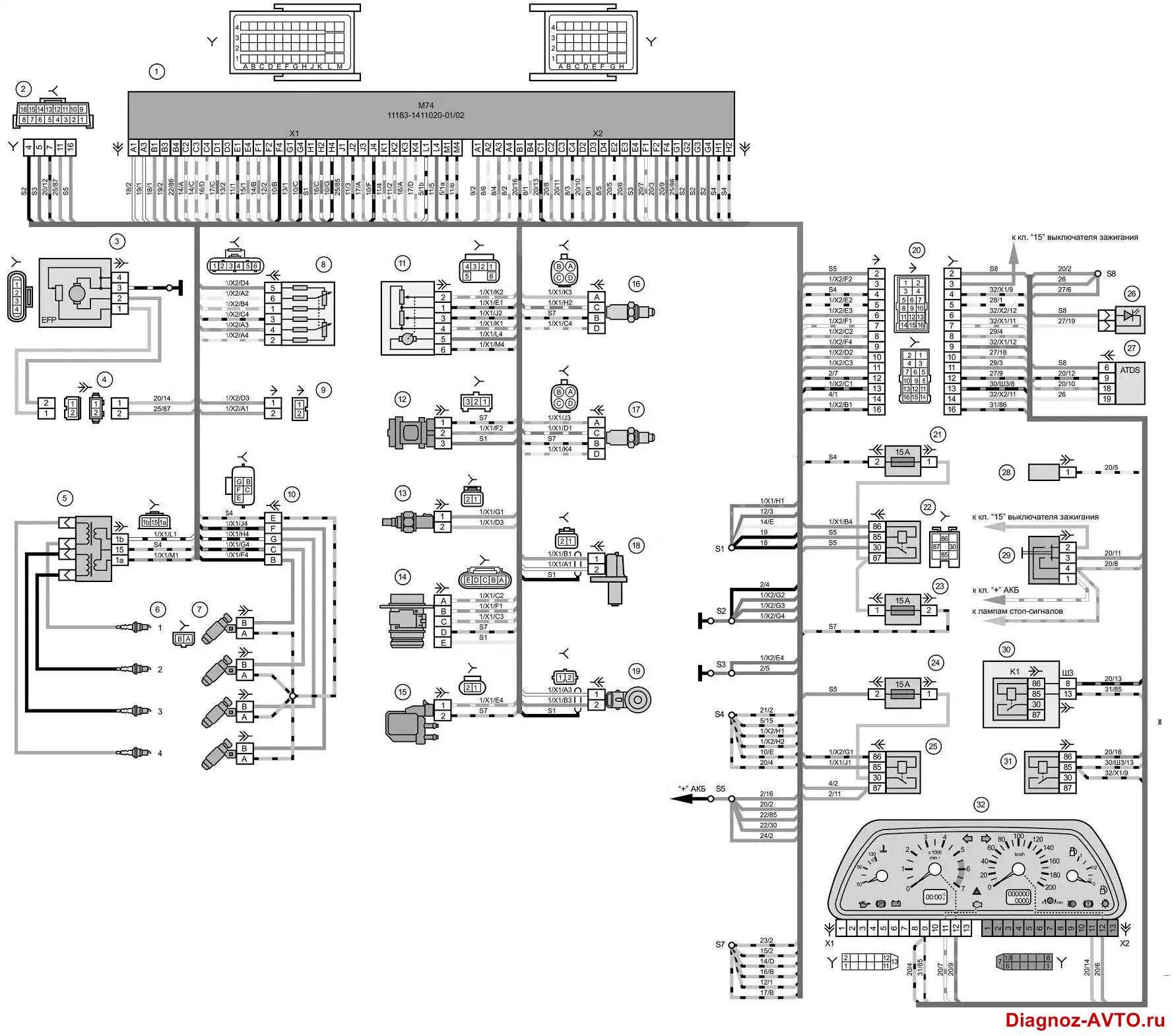 Электросхема управления двигателем ВАЗ 1118 Евро-4, контроллер М74