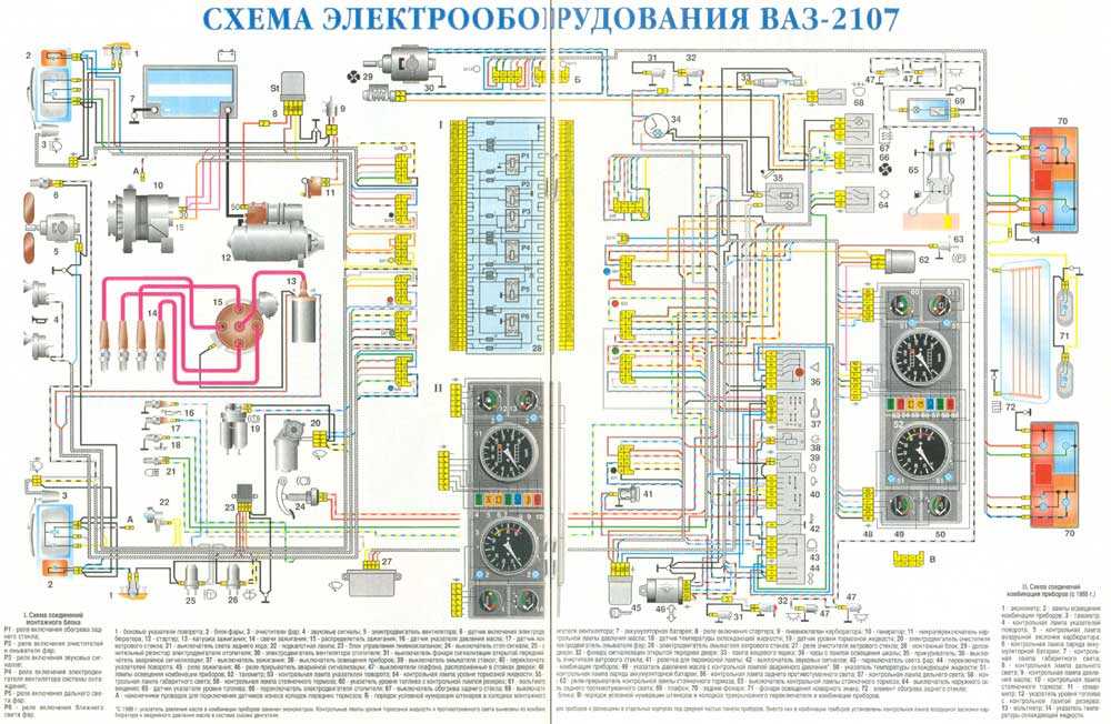 Схема проводки ВАЗ 2107 инжектор: цветная с описанием