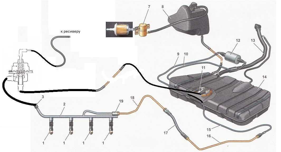 Все эти компоненты взаимодействуют друг с другом для обеспечения нормальной работы топливной системы автомобиля ВАЗ 21214 инжектор.