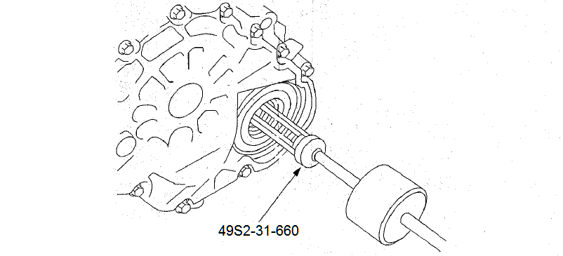 12. Мазда предполагает использование специнструмента: SST съемник № 49S-231-660, чтобы снять пыльник раздаточной коробки. Удалите пыльник доступным способом.