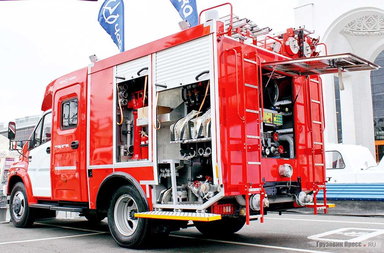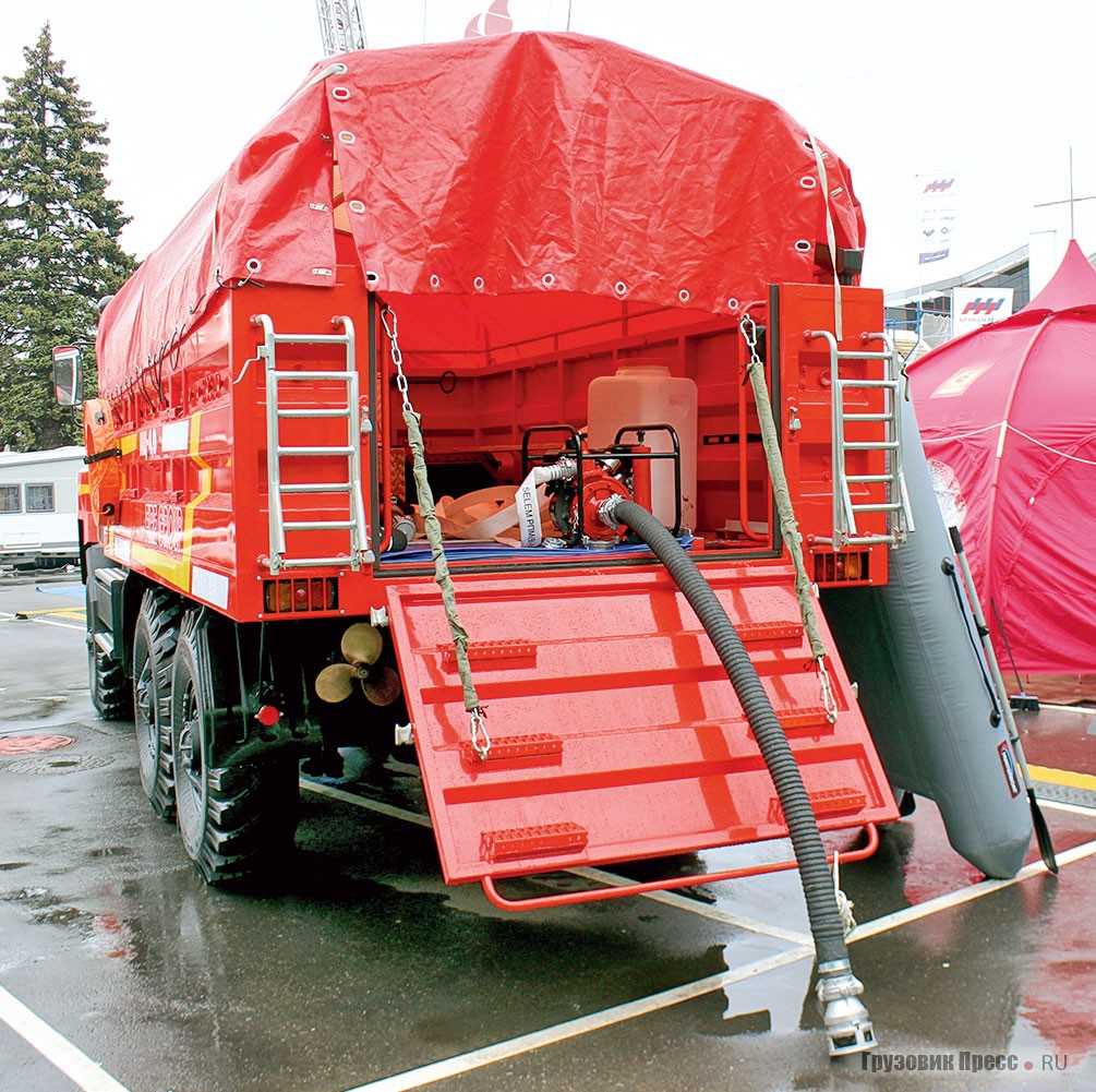 В герметичном грузовом отсеке размещены пожарный инвентарь, оборудование московского ООО «Фаер Групп» и цистерна на 4000 л для воды. Собственная насосная установка позволяет перекачивать воду в цистерну методом прямого забора из водоёма, реки или озера.