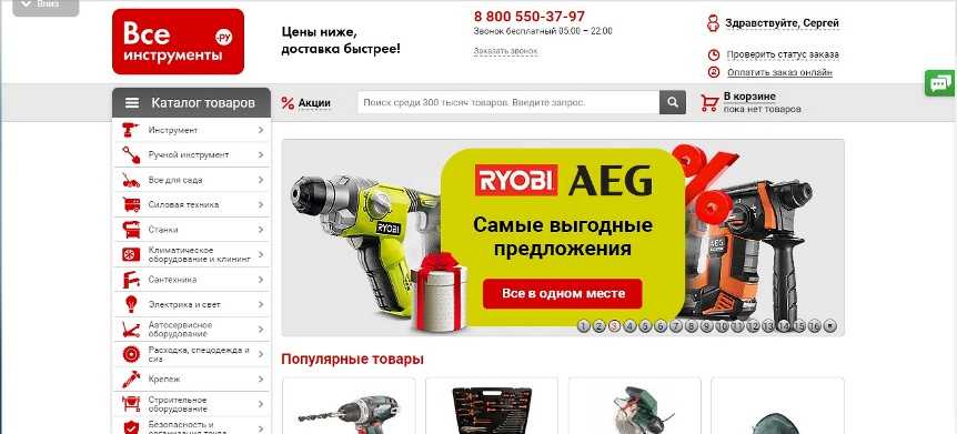 Название этого интернет-ритейлера, пожалуй, очень красноречиво. Здесь и в самом деле имеются практически все инструменты. Ни один из строительных аспектов здесь не забыт. Огромный перечень ручных инструментов дополняется обширным набором электрооборудования. Впечатляет и перечень марок, которые можно тут отыскать: Patriot, DeWalt, Stanley, Ryobi, Inforce.