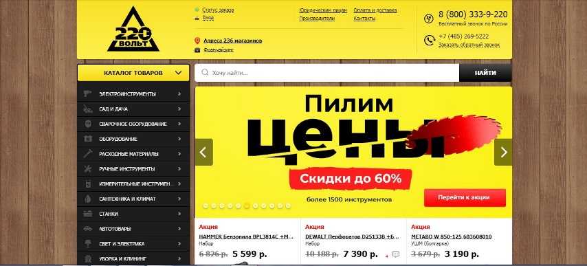 Пожалуй, интернет-ритейлер «220 Вольт» известен большинству россиян. Причем известность эта обусловлена широчайшим выбором различных товаров. Какой бы инструмент вам ни требовался, — элементарный ручной или сложнейшие станки, — все это можно найти именно здесь.
