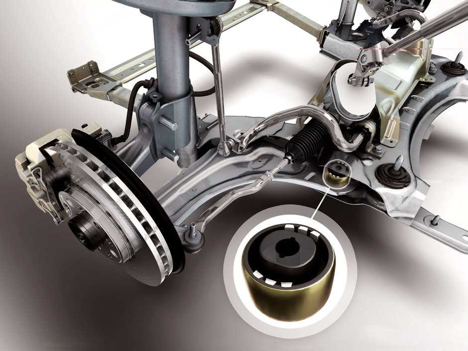 Известно, что комфорт и управляемость – свойства, которые часто противоположны, так как зависят от жесткости подвески. Совместить их можно только в сложных многорычажных подвесках. Плавность хода автомобиля обеспечивается сайлентблоками и шаровыми шарнирами, а также четко выверенной кинематиой. При наезде на препятствия хорошо гасятся удары. Все элементы подвески крепятся к подрамнику благодаря мощным сайлентблокам, поэтому салон изолирован от шума колес. Основным преимуществом является управляемость.