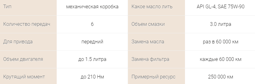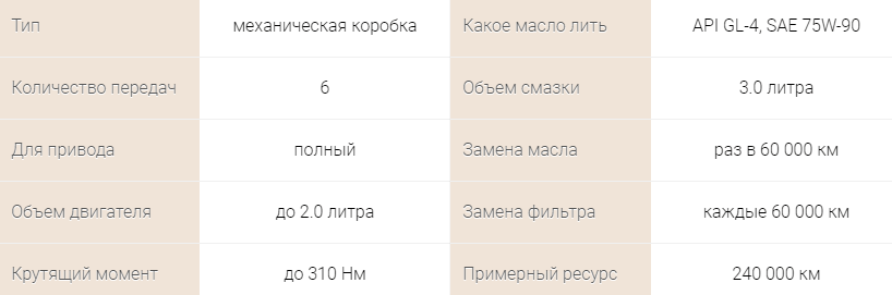 Объем масляной системы механических КПП составляет 3 литра трансмиссионного масла с допуском API GL-4, SAE 75W-90. Регламент предписывает производить замену каждые 50 тыс.км.