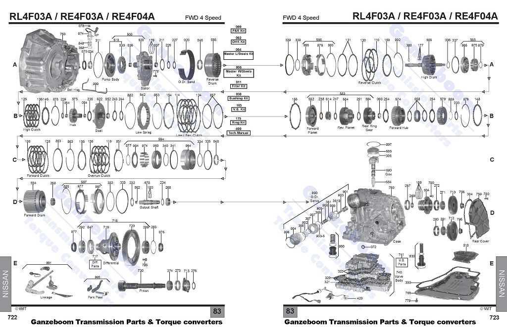 - RE4F04B. Агрегатировалась с дизельными и бензиновыми двигателями объемом 1998, 2184 и 2488 см3 мощностью от 114 до 280 л. с.