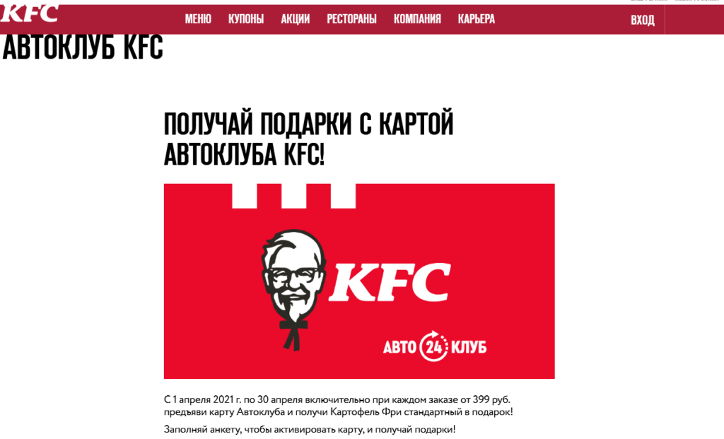Условия акции «Автоклуб KFC»
