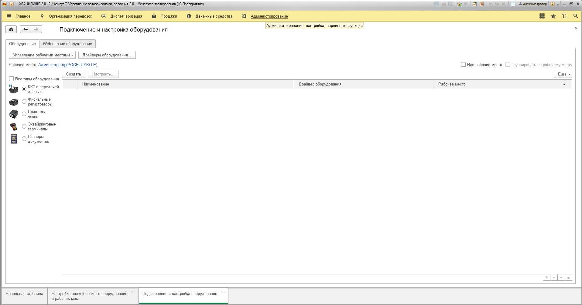 Драйвер оборудования – отображается драйвер устанавленного оборудования. До версии 2.0.10 драйвер оборудования можно запросить в службе технической поддержки, с версии 2.0.10 драйверы можно будет скачивать с официального сайта устанавливаемого оборудования.