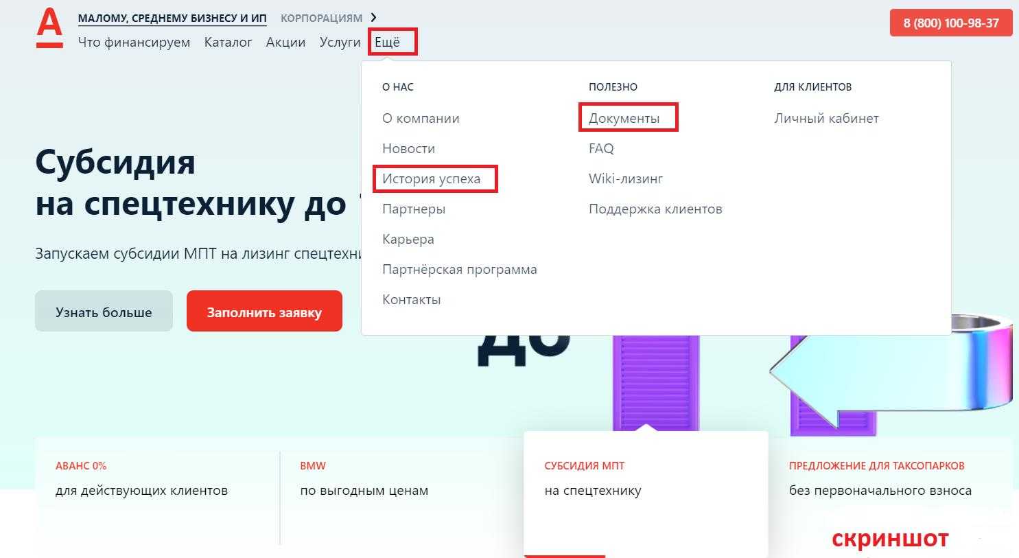 Ознакомиться с общими условиями лизинга можно на официальном сайте компании в разделе «Документы». А история успеха данной структуры изложена в соответствующей вкладке.