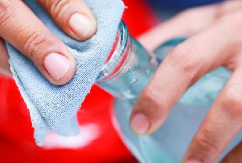 - Смочите салфетку обезжиривателем и хорошенько протрите его, прилагая значительные усилия.