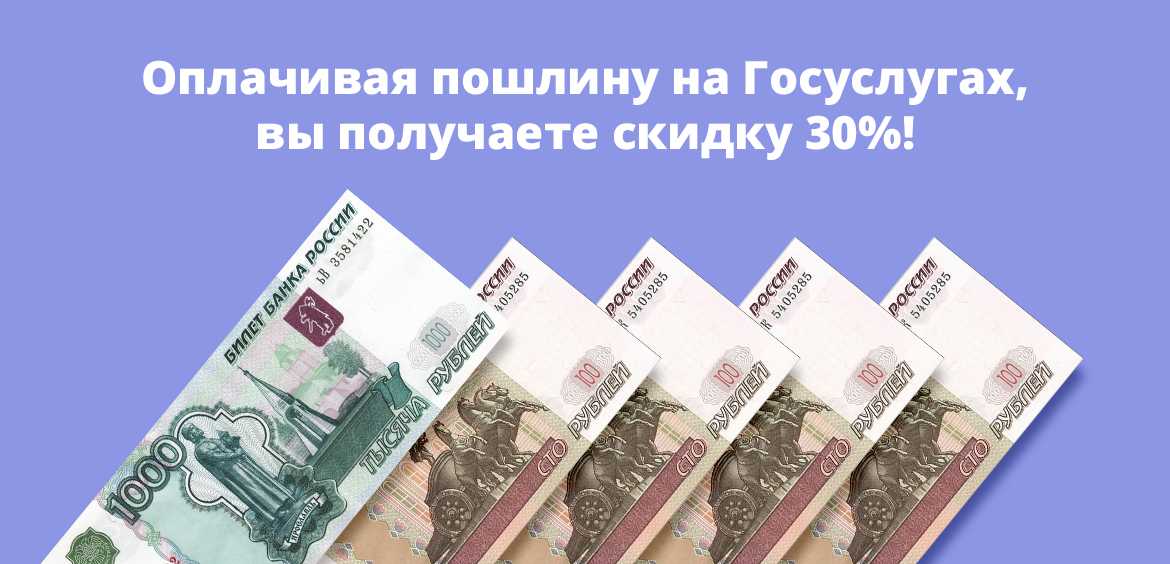 Обратите внимание, что за оплату пошлины онлайн дается скидка 30%: