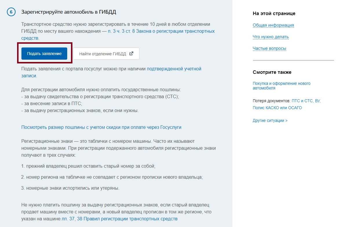 Перейдя по ней, вы заполните заявление на постановку автомобиля на учет.