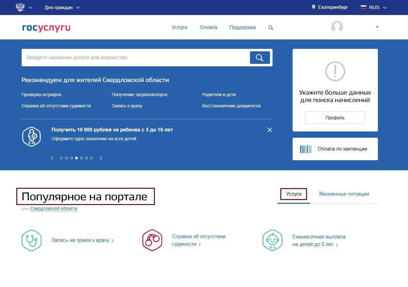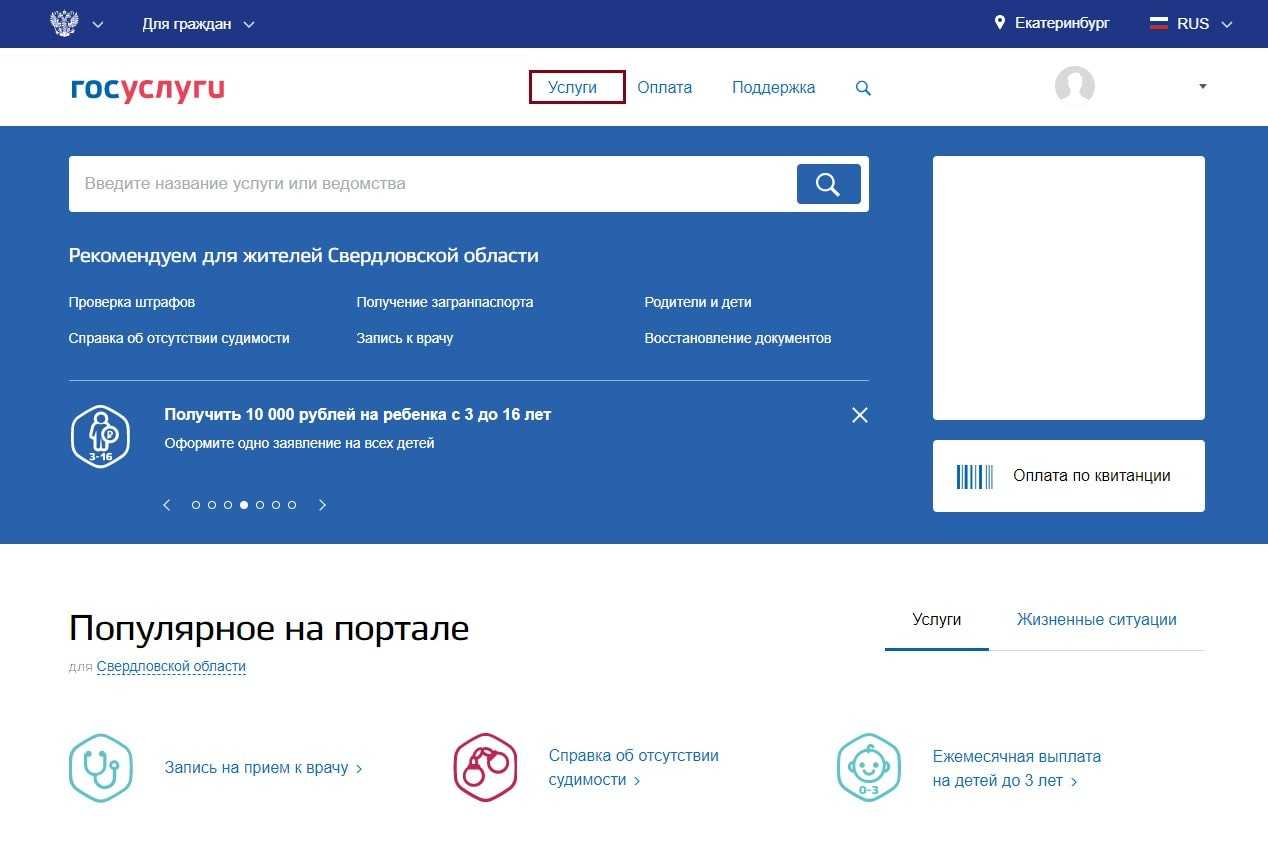 Или нажав на кнопку «Услуги» в разделе «Популярное на портале».