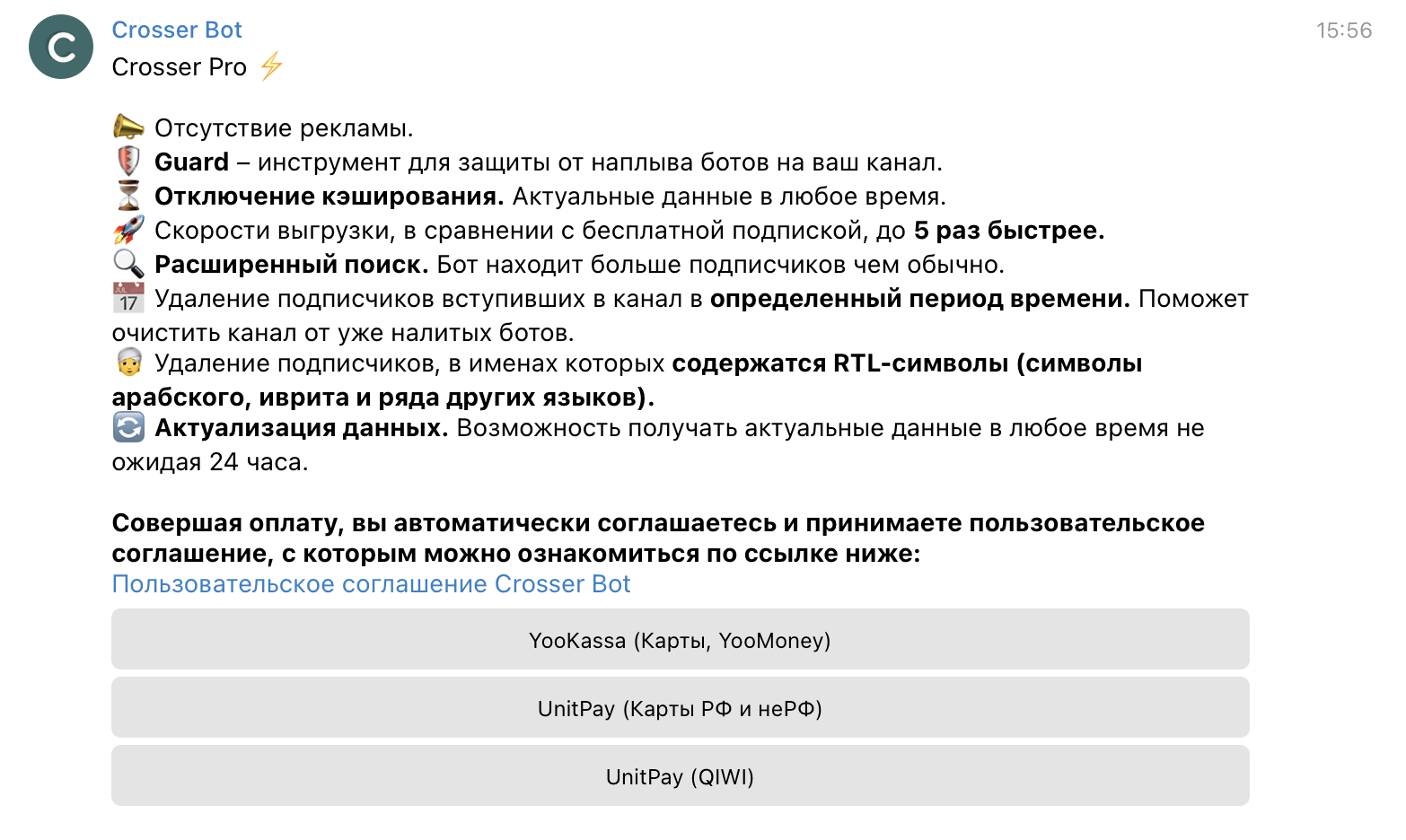 В чем соль? Соль в том, что Кроссер чистит всех кто вошел, иными словами Кроссер будет удалять и реальных подписчиков, а учитывая что мы только что купили ботов сразу на месяц, можно сказать что канал который пользуется Кроссом просто останавливается в развитии на время использования кроссера! Иными словами этот интрумент просто убивает канал, останавливая его развитие!