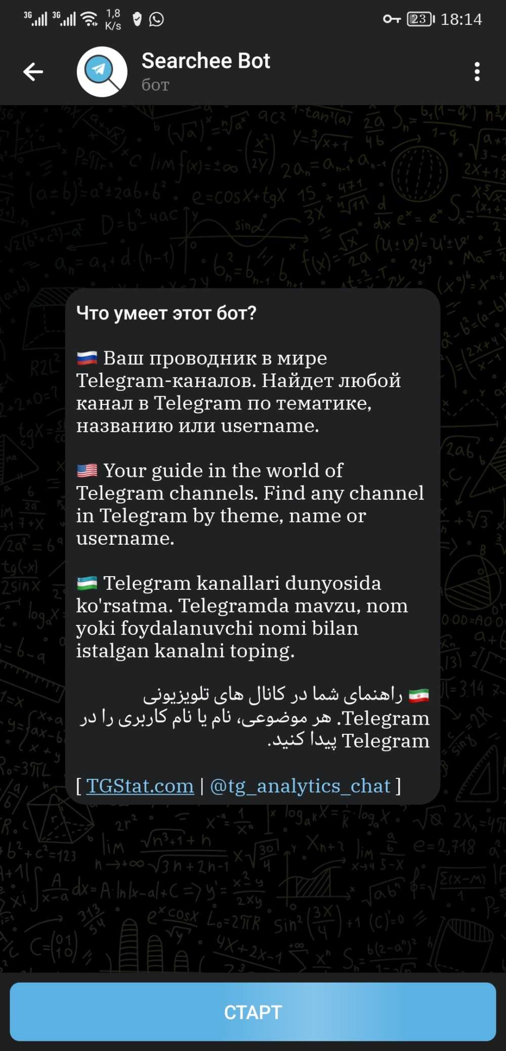 Некоторые пользователи привыкли искать через любую поисковую систему, однако найти конкретный канал в таком случае будет проблематично. Для поиска по определенной тематике можно воспользоваться специальным ботом @SearcheeBot, который позволяет найти сразу несколько вариантов.