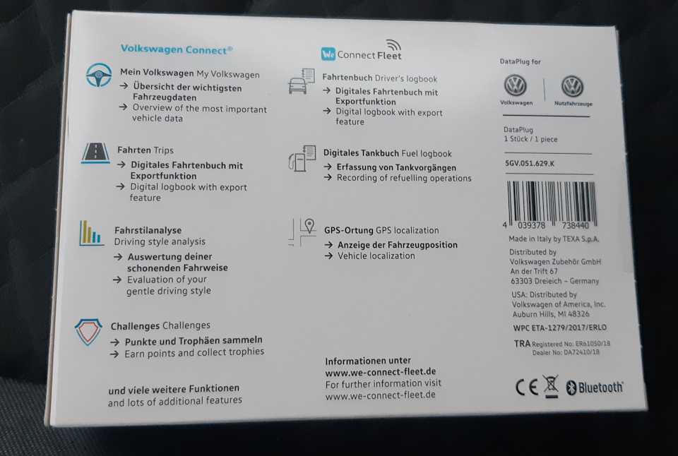 4. Загружается и устанавливается приложение Volkswagen Connect на Ваш мобильный телефон (для Android, для iOS).5. Запускаешь приложение, вводишь PIN с модуля или коробки и вот оно счастье, теперь вся инфа об автомобиле у тебя в мобильном.Подробно описывать не буду о том, что может этот модуль. Вся инфа о данном сервисе есть здесь.От себя могу сказать, что тема прикольная. Для меня самое главное, что все поездки фиксируются и можно проследить сколько потратил бензина, какая манера езды и где оставил авто на парковке (для меня актуально, когда приезжаешь в МЕГА или IKEA в Москву. Периодически хожу по парковке ищу машину).