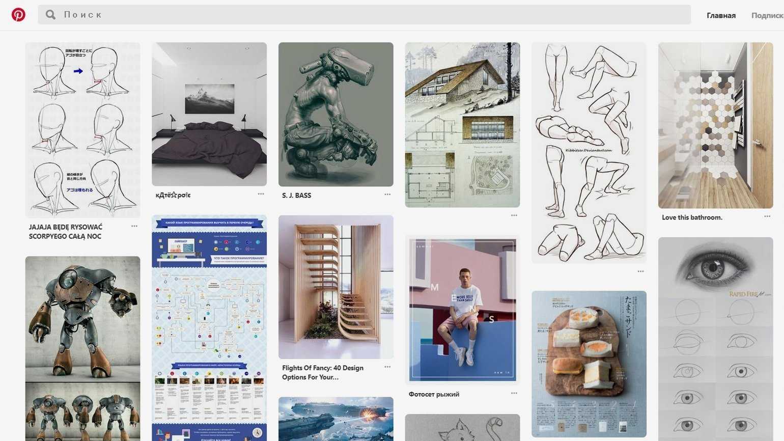 . Чаще всего это первый ресурс, который посещают дизайнеры разных специализаций в поисках вдохновения. Самая удобная функция на Pinterest — возможность создавать свои подборки.