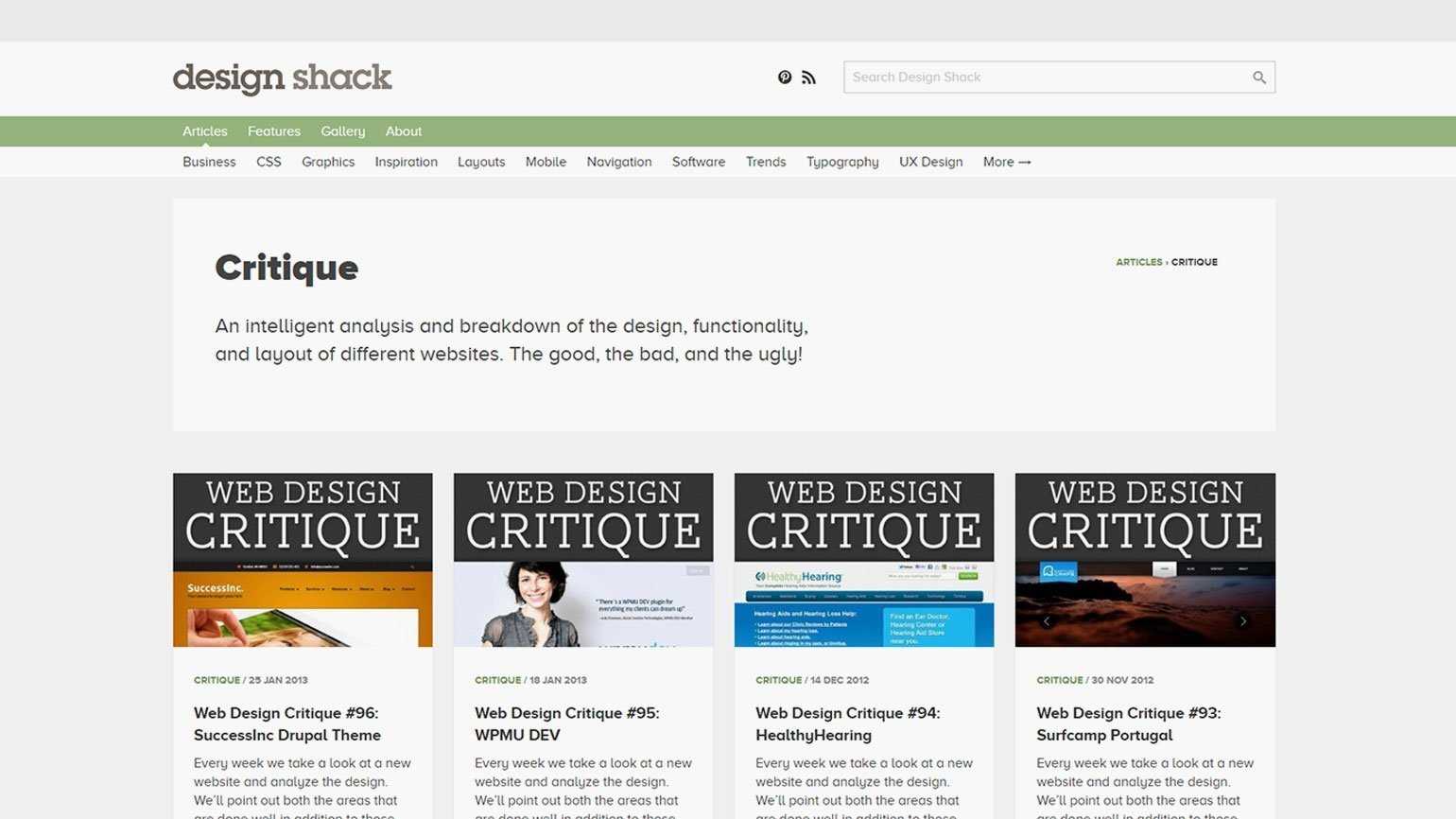 Design Shack. Сайт для дизайнеров, на котором не хвалят, а критикуют. Новички наверняка узнают для себя много полезного.