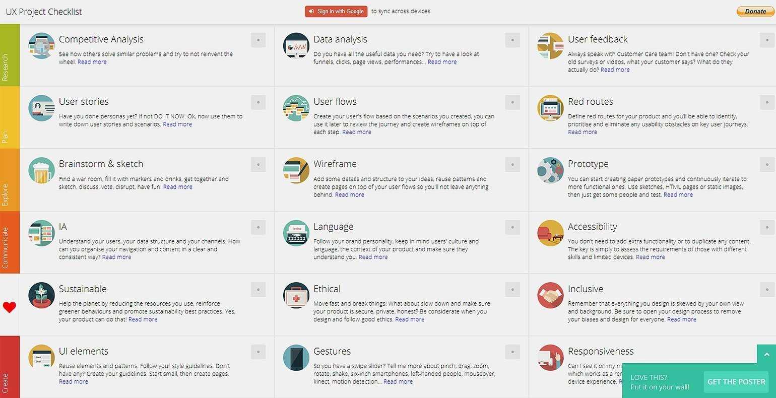 UX Project Checklist. Этот ресурс — список действий по UX, с помощью которых можно пройти весь процесс от начала до конца и не забыть ни о чём.