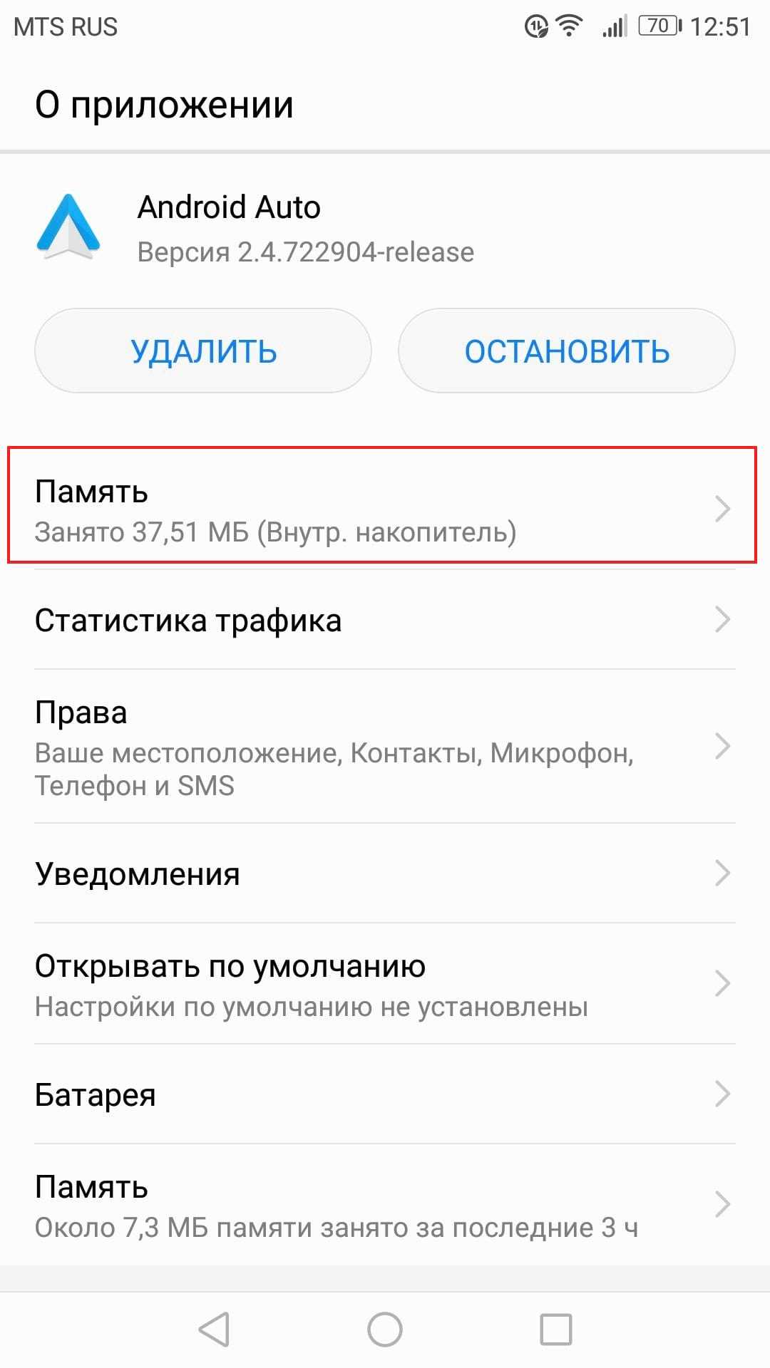 Если все еще возникают проблемы после того, как все необходимые галочки поставлены, то, возможно, настало время «обновить» приложение. Снова откройте меню приложений (настройки > приложения) и найдите приложение Android Auto.