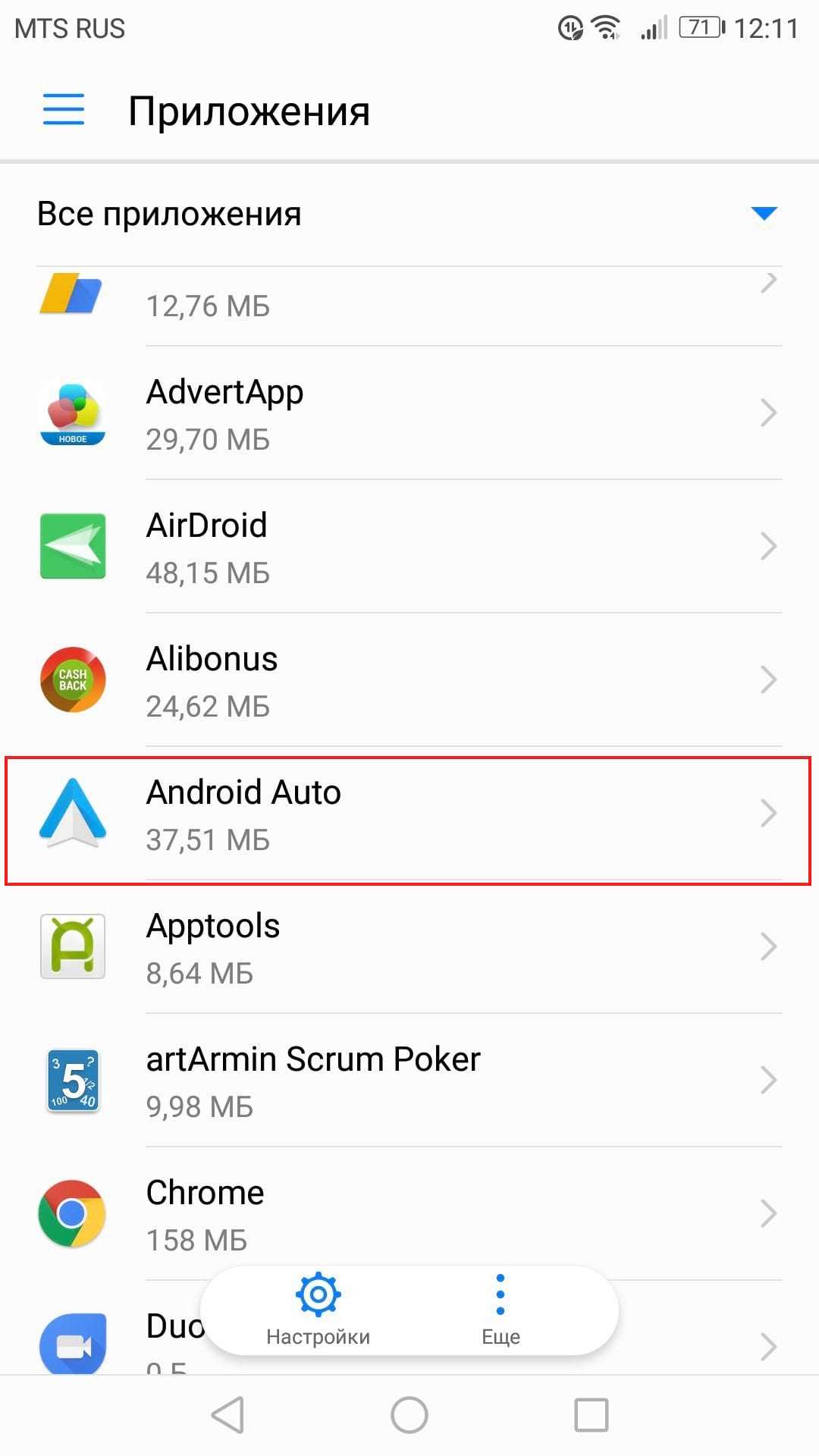Если все предыдущие шаги не исправили Вашу проблему, то остается последний. Перейдите в меню приложений (Настройки > Приложения). Найдите Android Auto.