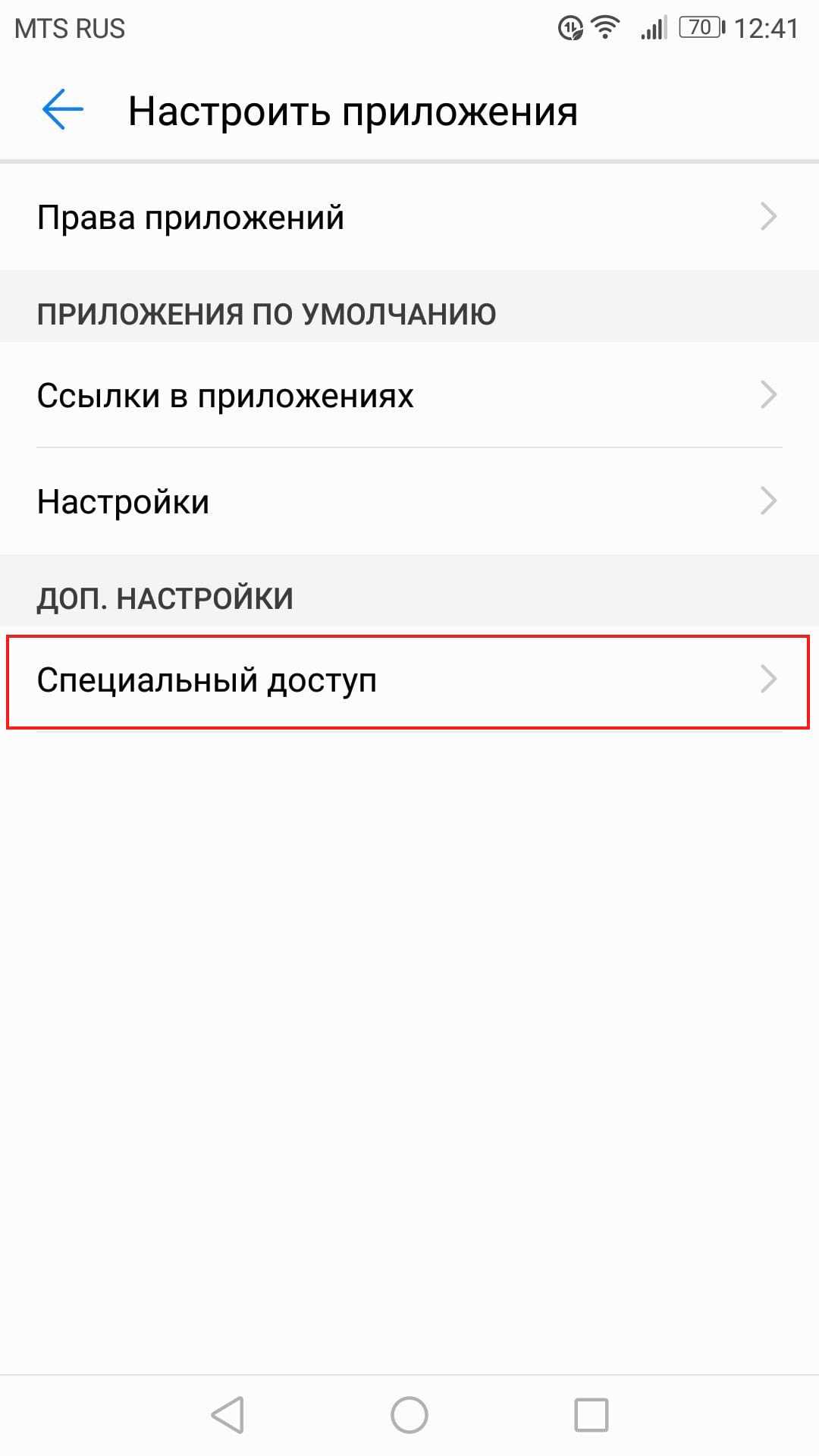 Прокрутите вниз и нажмите на «Специальный доступ».