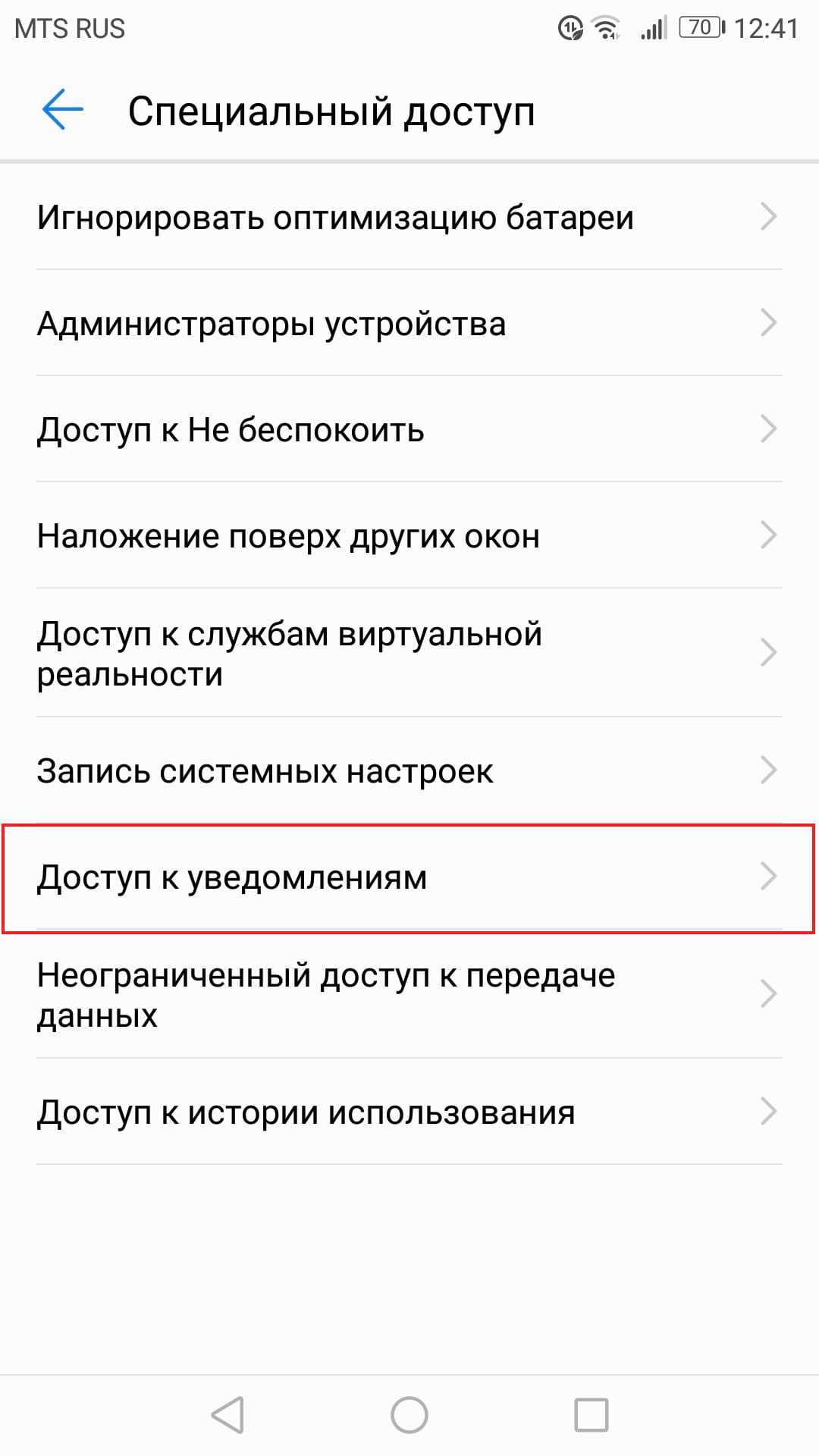 Если у вас возникли проблемы с уведомлениями, то убедитесь, что доступ к уведомлениям включен.