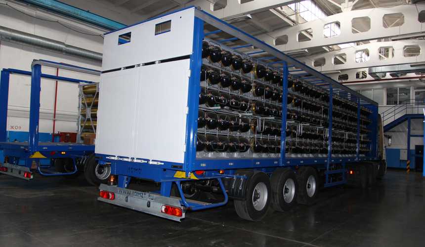 Отчасти проблему отсутствия газовых заправок могут помочь решить такие передвижные газонаполнительные станции, сделанные на базе обычных полуприцепов. Суммарный объем баллонов — до 5000 кубометров. Стоимость такого газового автопоезда огромная — почти 26 млн рублей.