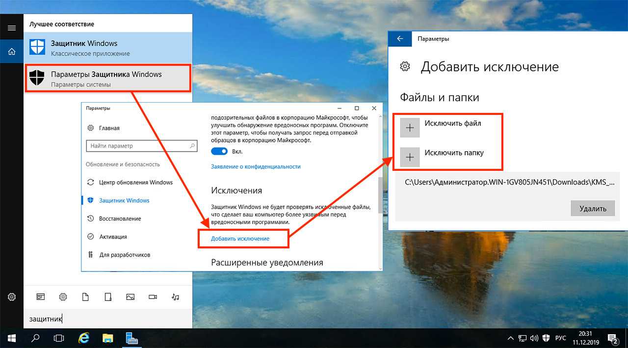 Как добавить активатор KMS в исключения антивируса Windows 10