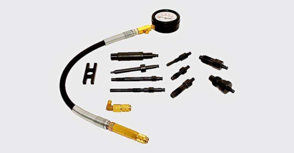 Со временем компрессионные кольца «залипают». Компрессия снижается. Типичный признак неисправности — из выхлопной трубы идет белый дым. Он густой и появляется только во время запуска мотора. Измерить показатель можно с помощью специального прибора — компрессометра. Он показывает давление в цилиндре, а устанавливается в отверстие свечи накаливания или форсунки. Затем диагностику выполняют так: