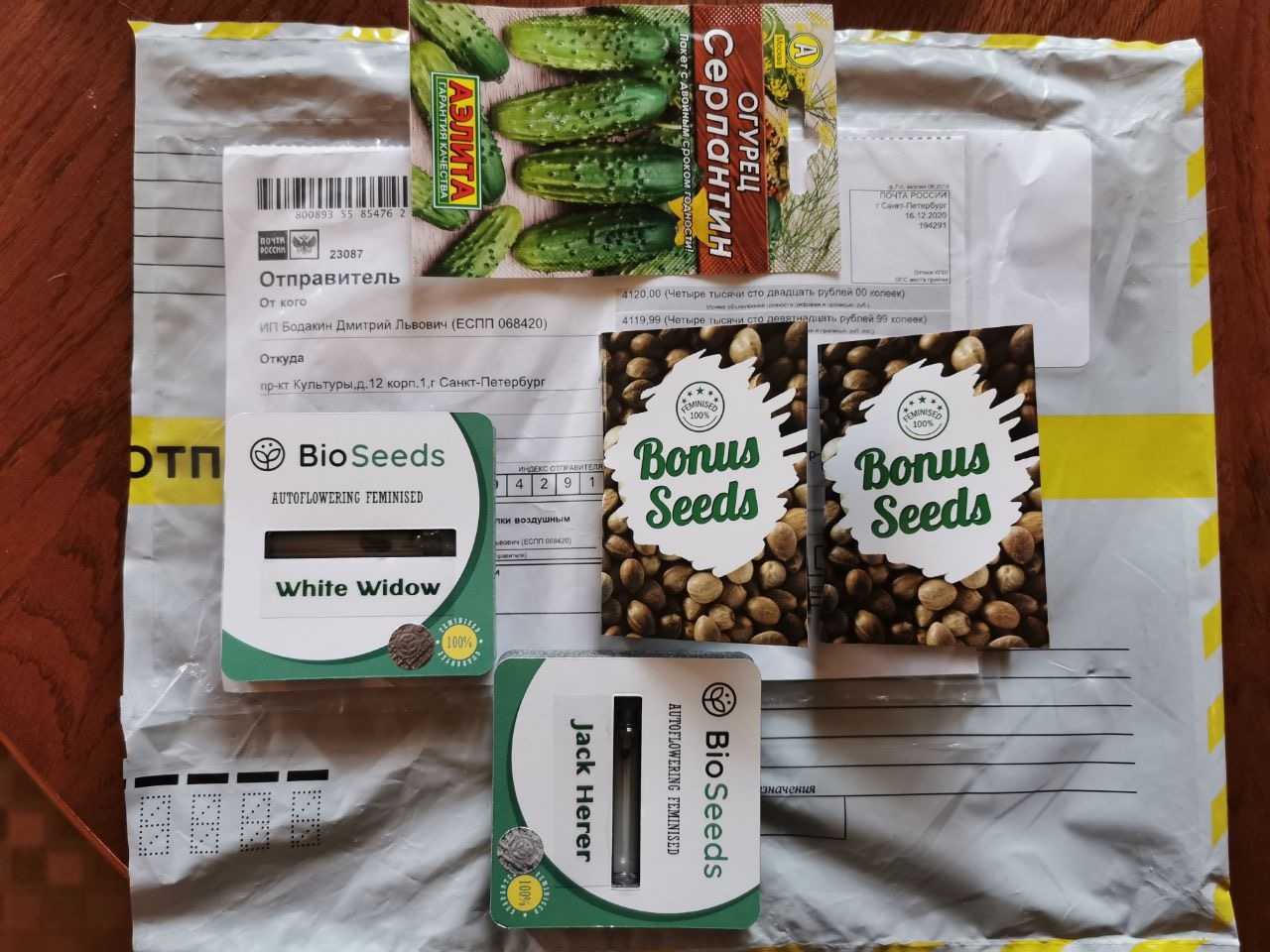 Я помню слухи, возможно, правдивые, что много лет назад магазин dzagiseeds.ru как-то попал под замес, и в руках ментов оказались адреса покупателей. Помню также байку о каком-то почтовом работнике, который прежде служил в милиции и знал, что конверты, приходящие с такого-то адреса — это семена, и потом канючил, вымогая у адресатов на пиво. Однако, шансы попасть в такую историю настолько же малы, как и шансы, что вы станете министром МВД.