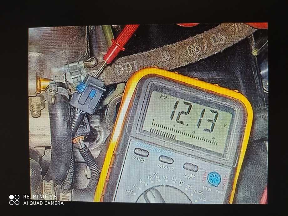 Далее стоит проверить импульсный провод. Для этого необходимо подключить к нему красный щуп мультиметра. Черный щуп подключить к массе автомобиля. Завести двигатель. На холостых оборотах должно появиться значение напряжения равное 12В. При нажатии на педаль газа, значения не должны пропадать. Если данных нет, то проблема кроется в проводе или самой системе зажигания.